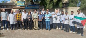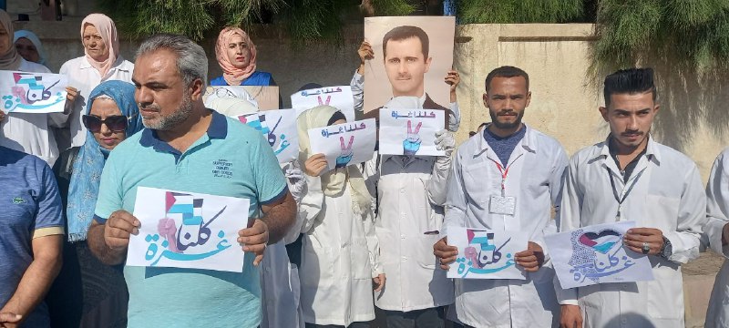 نفذت نقابة التمريض والمهن الطبية والصحية بدير الزور اليوم وقفة تضامنية دعماً للشعب الفلسطيني ومقاومته، وتنديداً بمجازر الاحتلال الإسرائيلي بحق أهالي قطاع غزة.