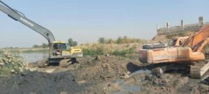 باشرت مديرية الموارد المائية بدير الزور بعملية إزالة السدة الركامية التي وضعت بمدخل الفرع الصغير لنهر الفرات