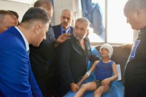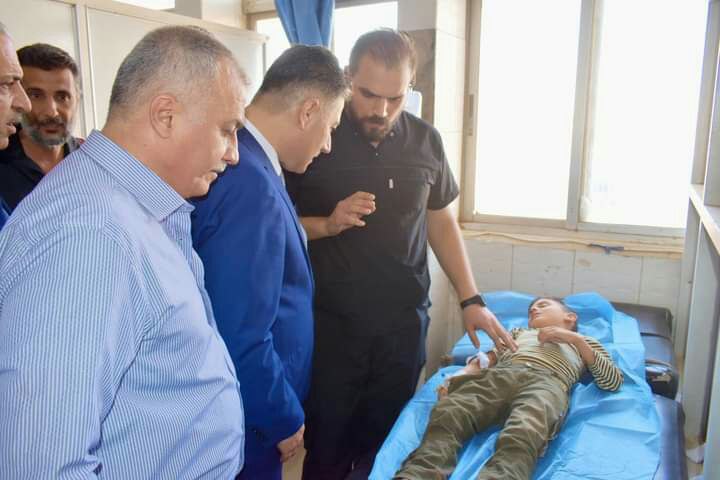 أمين فرع حزب البعث العربي الاشتراكي رائد الغضبان ومديرالتربية سهيل الحيجي زاروا التلاميذ المصابين بهدف الاطمئنان على صحتهم .