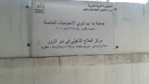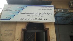 شهد مركز العلاج التأهيلي في جمعية يدا بيد في ديرالزور خلال هذا العام تزايد اعداد طالبي خدماتها التي تقدمها عبر أقسام عدة منها قسم العلاج الفيزيائي المختص بجلسات العلاج الفيزيائي لمختلف الأعمار، وقسم التنمية الفردية ويشمل علاج الإعاقات الذهنية والأطراف الصناعية ، وكذلك علاج حالات تأخر وصعوبة النطق.