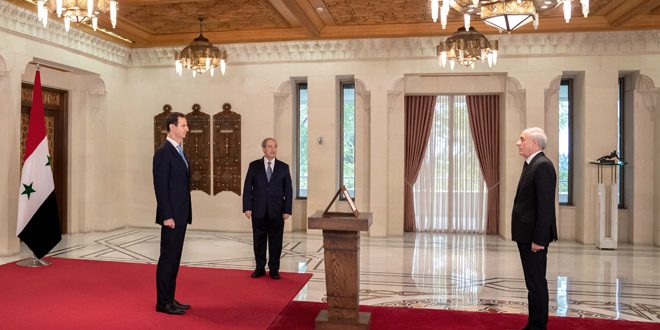 حضر مراسم أداء اليمين الدكتور فيصل المقداد وزير الخارجية والمغتربين.