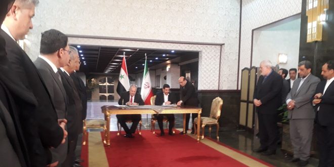 ووقع المهندس عرنوس والدكتور مخبر محضر بروتوكول اجتماعات اللجنة العليا المشتركة السورية الإيرانية.