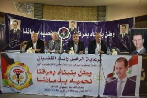 تحت شعار “وطن بنيناه بعرقنا نحميه بدمائنا” بحضور السادة جدعان الصالح عضو قيادة فرع ديرالزور لحزب البعث العربي الاشتراكي بديرالزور رئيس مكتب العمال والاقتصادي الفرعي و حمود الشيخ نائب رئيس المكتب التنفيذي في محافظة ديرالزور وطلال عليوي عضو المكتب التنفيذي للاتحاد العام لنقابات العمال .