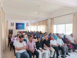 الورشة الحوارية الفرعية بعنوان ” حرب تشرين التحريرية.. إرادة شعب ” ألقاها العميد المتقاعد جمال سليمان أمين شعبة المحاربين القدماء سابقاً ، وأدار الورشة تمام جاووش رئيس مكتب الإعداد والثقافة والإعلام الفرعي.
