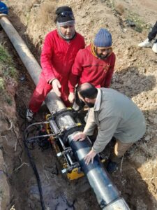 باشرت وحدة مياه الميادين في المؤسسة العامة لمياه الشرب والصرف الصحي بدير الزور أعمال مشروع تنفيذ خط بولي إيتلين قطر 110 مم والمغذي لخزان دبلان العالي الذي تقوم بها المؤسسة بالتعاون مع منظمة GVC .