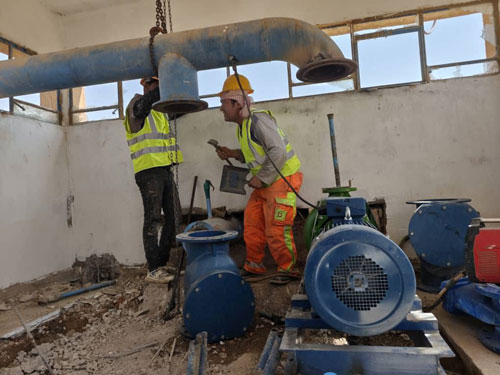 حيث تم تركيب المضختين الصافية والخامية، واستكمال تركيب القواعد الاسمنتية والمعدنية، وتركيب الشراق للمضخة الثانية .