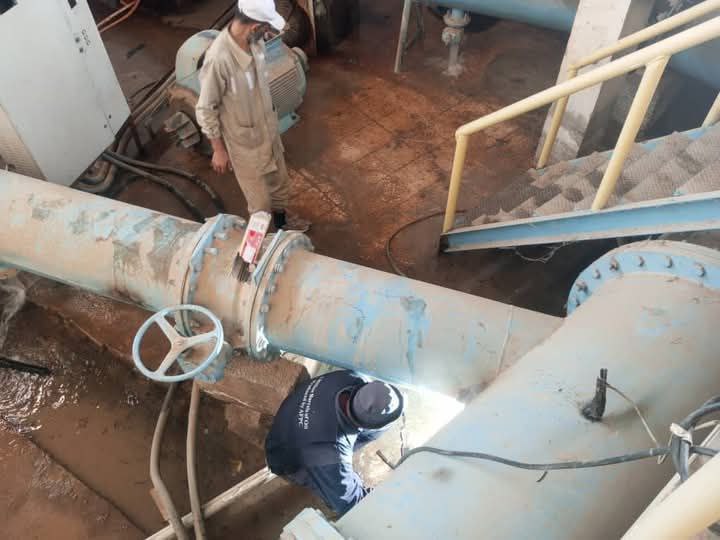 وفي البوكمال ،نفذت الورشة الفنية التابعة لوحدة مياه البوكمال اعمال صيانة لشراقات المآخذ الخامي لمحطة مياه البوكمال الرئيسية وذلك لزيادة الوارد المائي .