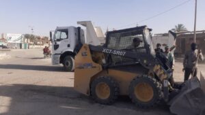 لا تزال ورشات مجلس مدينة الميادين تعمل على تنظيف الطريق الواصل بين دوار “البلعوم” ودوار “البكري” وتقليم أشجار النخيل في المنصفات.
