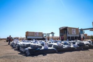 وزعت منظمة الهلال الأحمر العربي السوري في دير الزور مواداً غير غذائية وسلالاً غذائية وصحية على 125عائلة من العائدين إلى منطقة “كباجب” في بادية دير الزور.