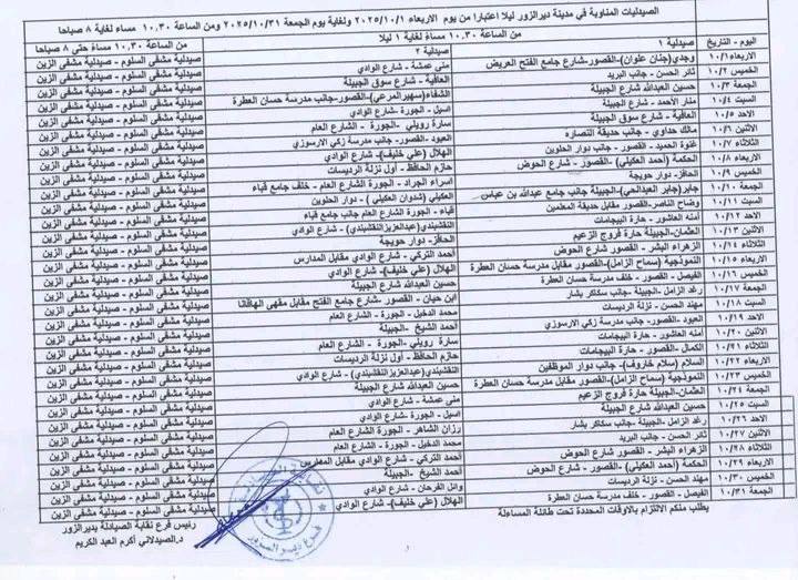 الصيدليات المناوبة ليلاً بمدينة دير الزور عين الفرات في 4 تشرين أول , 2025 شارك FacebookTwitterWhatsAppTelegramFacebook Messenger أصدر فرع نقابة الصيادلة بدير الزور جدول المناوبات الليلية لصيدليات مدينة ديرالزور عن شهر تشرين الأول الحالي من عام 2025
