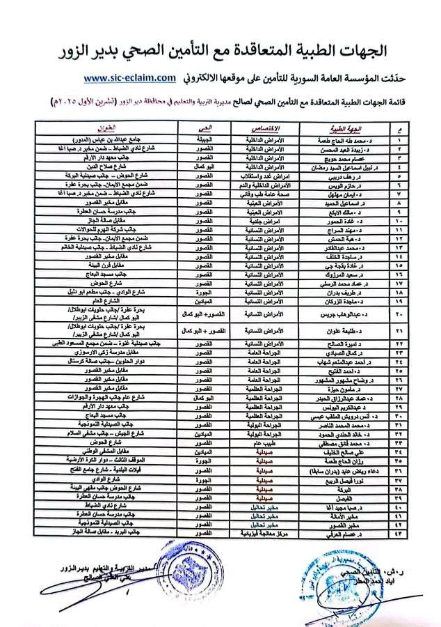 مديرية التربية والتعليم بدير الزور تعلن عن تجديد خدمة التأمين الصحي عين الفرات في 11 تشرين أول , 2025 شارك FacebookTwitterWhatsAppTelegramFacebook Messenger مراسل الفرات ديرالزور : أعلنت مديرية التربية والتعليم في دير الزور عن تجديد التعاقد مع الجهات الطبية الخاصة بخدمة التأمين الصحي لصالح المديرية وذلك عن شهر تشرين الأول من عام 2025 .