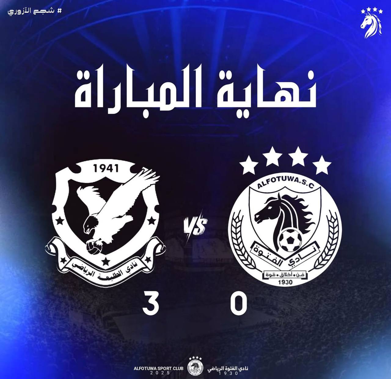 انتهت المباراة بخسارة فريق الفتوة بثلاثة أهداف دون رد أمام نادي الطليعة، في المباراة الافتتاحية لنادي الفتوة في دوري برايم للمحترفين لموسم 2025 ـ 2026.