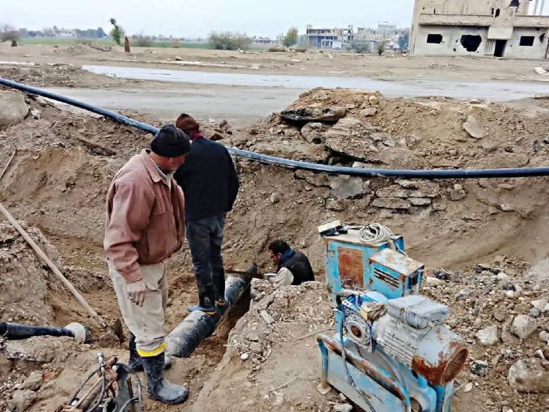 أنهت الورش الفنية في مؤسسة مياه الشرب بدير الزور، أعمال تمديد خط مياه جديد في حي الصناعة بدير الزور.