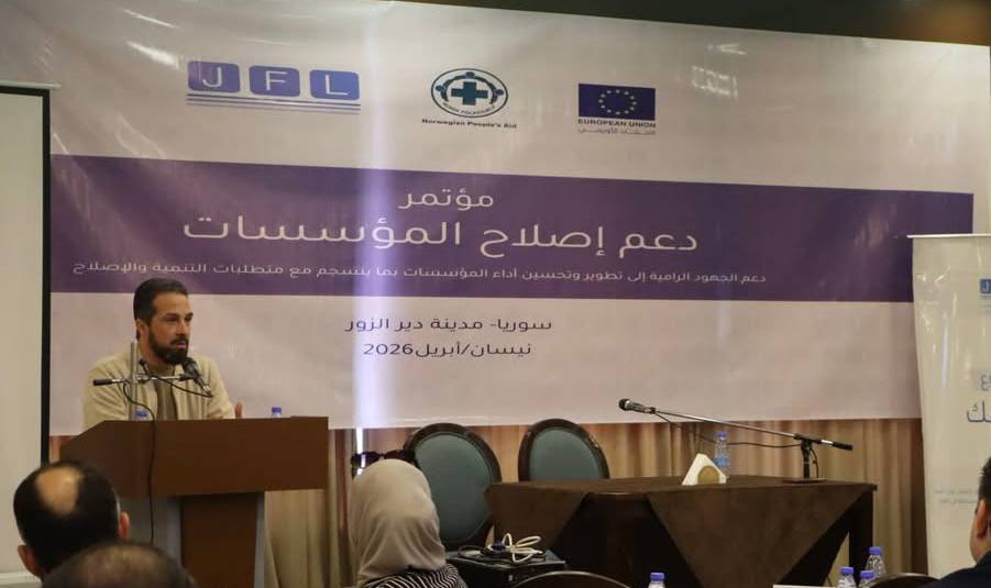 نظمت منظمة “العدالة من أجل الحياة”، بالتنسيق مع وزارة الشؤون الاجتماعية والعمل ومديريتي الشؤون الاجتماعية والعمل والتعاون الدولي في دير الزور، مؤتمراً بعنوان “دعم إصلاح المؤسسات”.