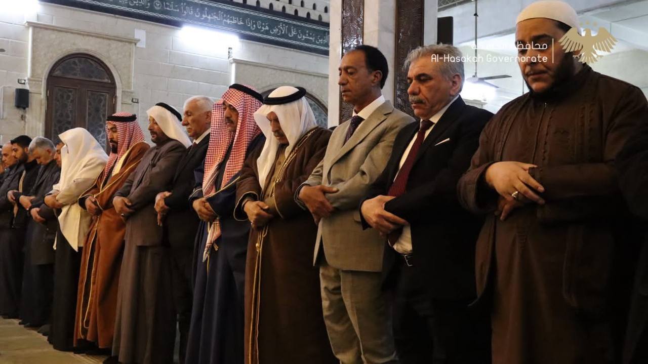 أدى محافظ الحسكة، المهندس نور الدين أحمد، صلاة عيد الفطر المبارك في جامع “معاذ بن جبل” بمدينة الحسكة، حيث شارك في أداء الصلاة عدد من المسؤولين وأهالي المدينة.