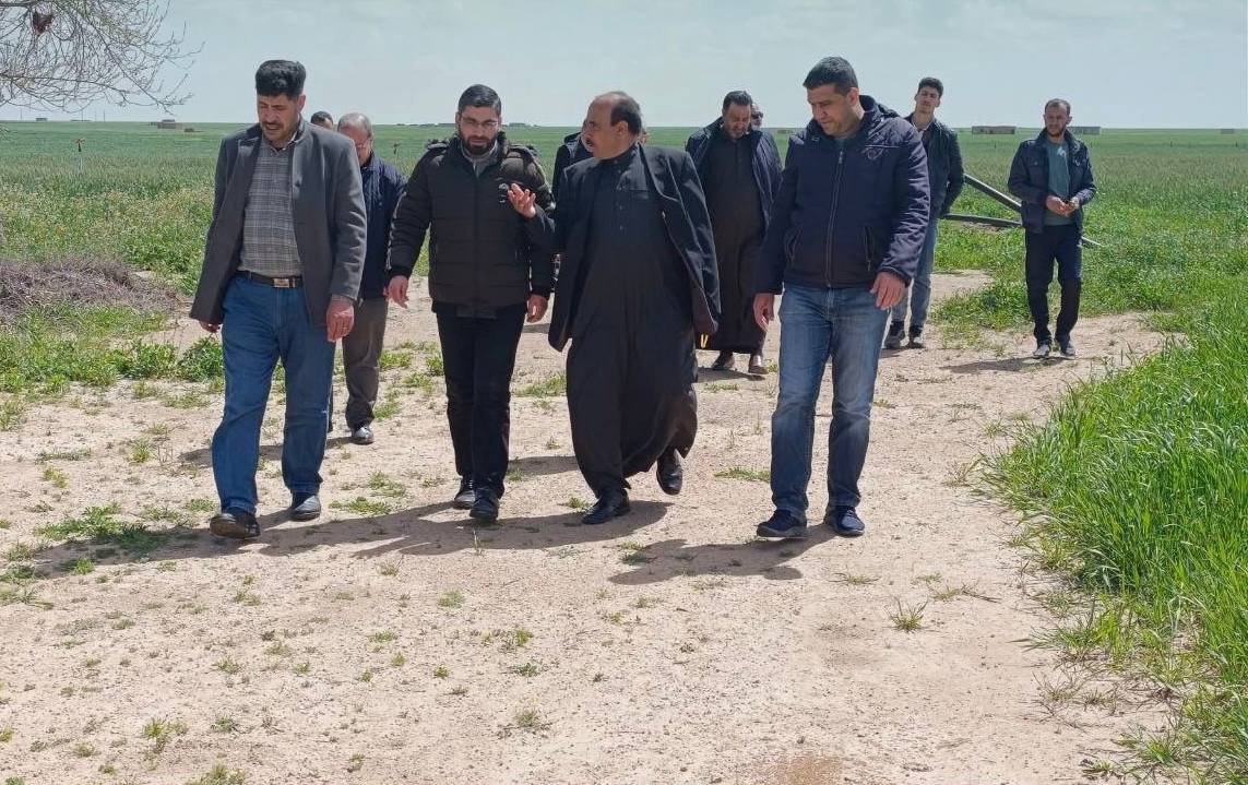 تفقد عضو المكتب التنفيذي للشؤون الزراعية في محافظة دير الزور المهندس ياسر عبوش، يرافقه وفد من مديرية الزراعة ونقابة المهندسين الزراعيين، الواقع الزراعي في منطقتي الجزرات والكبر بالريف الغربي للمحافظة.