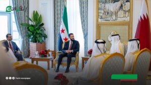 التقى السيد الرئيس أحمد الشرع اليوم في الدوحة صاحب السمو الشيخ تميم بن حمد آل ثاني، أمير دولة قطر، حيث عقد الجانبان اجتماعاً حضره وزير الخارجية والمغتربين السيد أسعد الشيباني، ورئيس مجلس الوزراء وزير الخارجية القطري معالي الشيخ محمد بن عبدالرحمن آل ثاني، وعدد من المسؤولين من كلا البلدين.