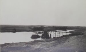 قام بوصف معالمها الأثرية قبل تهدمها العالم الأثري الألماني هرتزفلد وذكر أن فيها قلعة عسكرية مربعة الشكل مشيدة بالآجر لها أربعة أبراج مربعة في زواياها وتعود إلى عصر الإمبراطور ديوقلسيان.