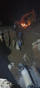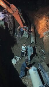 وأضاف الحسين أن الورشات قامت خلال الأسبوع الماضي باصلاح العطل الطارئ على خط الفونت الرئيسي قطر ٢٥٠ مم في حي القصور بالقرب من مقهى الهافانا.