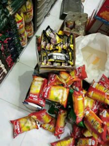 وأشار العباوي الى انه تمت مصادرة 118 كغ من المواد الغذائية شملت (زعتر وعصير ومايونيز بطاطا واكياس فريكة وشوكولا) كما تم مصادرة 45 كغ من المخللات الموضوعة في براميل بلاستيكية لعدم صلاحيتها للاستهلاك البشري اضافة لمصادرة 18 كغ من اللحم لعدم صلاحيتها للاستهلاك البشري حيث تم إتلافها وتنظيم ضبوط بحق المخالفين اصولا.