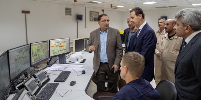 وأشاد الرئيس الأسد في حديثه مع العمال والفنيين بجهودهم في إنجاز هذا العمل الوطني، ودورهم بالحفاظ على هذه المنشأة الحيوية وحمايتها خلال سنوات الحرب.